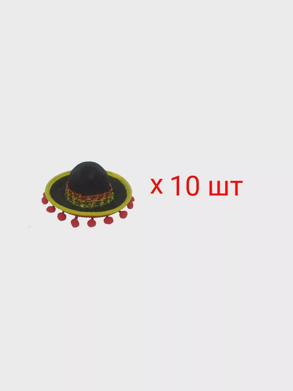 Сомбреро фетровая мексиканская карнавальная шляпка мини-шляпа на ободке, диаметр 15 см (Набор 10 шт)