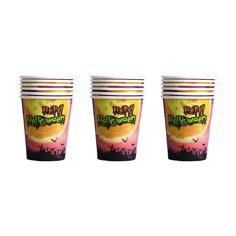 Стакан бумажный одноразовый на Хэллоуин "Черный замок Halloween" оранжевый (Набор 18 шт.)