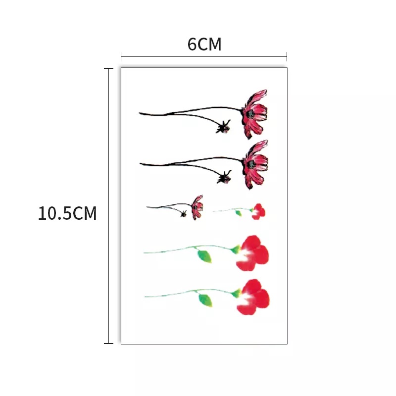 Татуировка "Красные цветы", размер 6 x 10,5 см