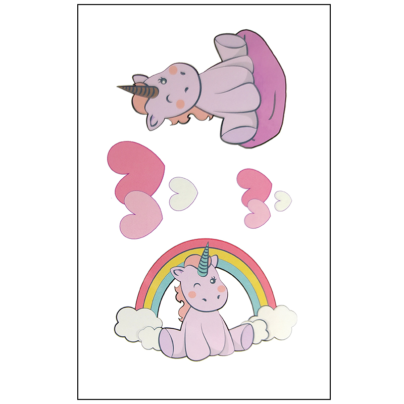 Татуировки временные переводные "Единорог радуга сердечки" тату для детей 10,5x6см