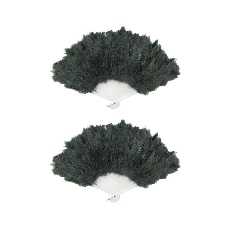 Веер из перьев черный "Перьевой" , карнавальный, складной (Набор 2 шт.)