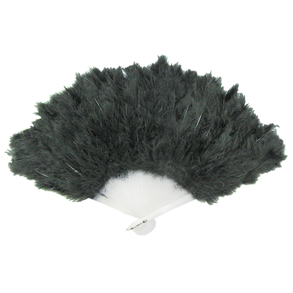 Веер из перьев черный "Перьевой", карнавальный, складной,