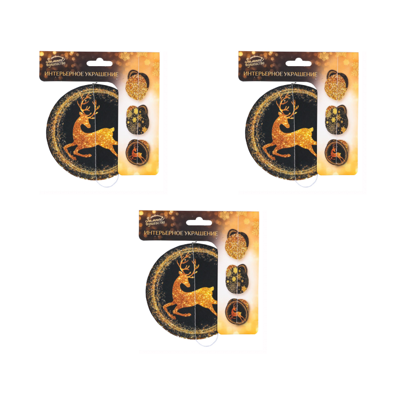 Вертикальная гирлянда на новый год "Богатства" черно золотая новогодняя олень (Набор 3 шт.)