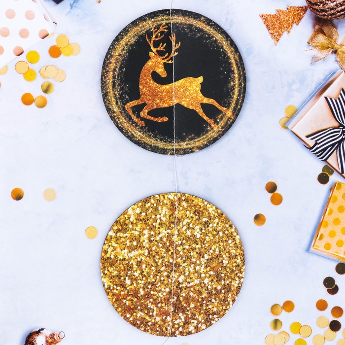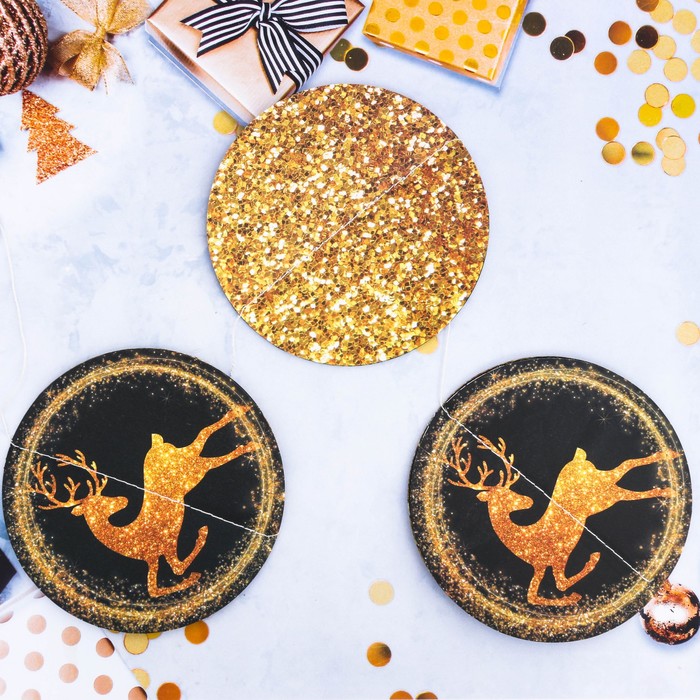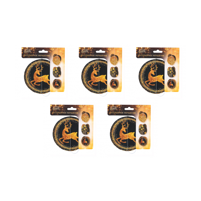 Вертикальная гирлянда на новый год "Богатства" черно золотая новогодняя олень (Набор 5 шт.)