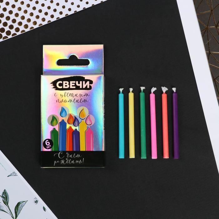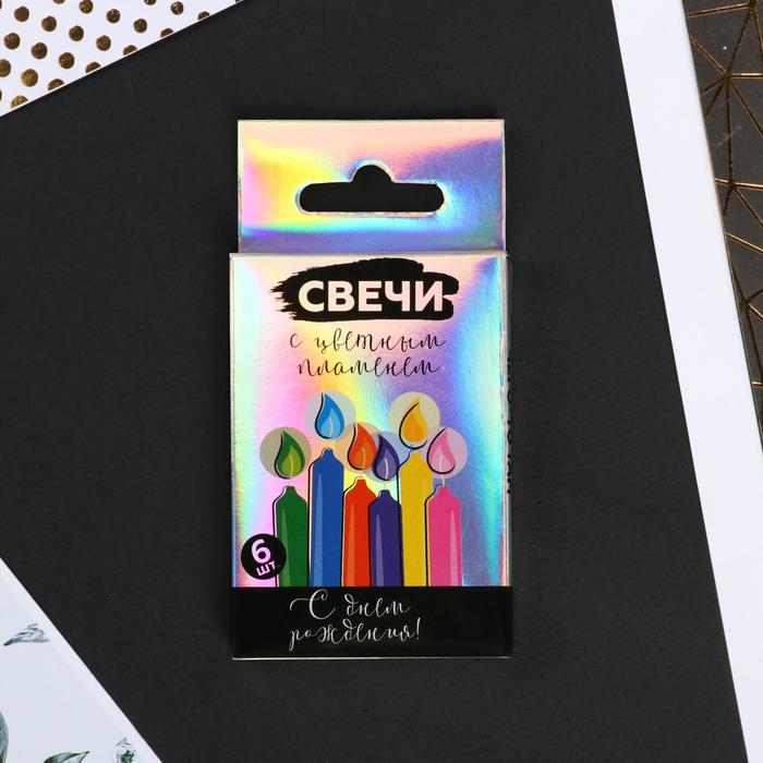 Набор свечей с цветным пламенем в коробке " С Днем рождения", 6 шт , 4 х 12 см