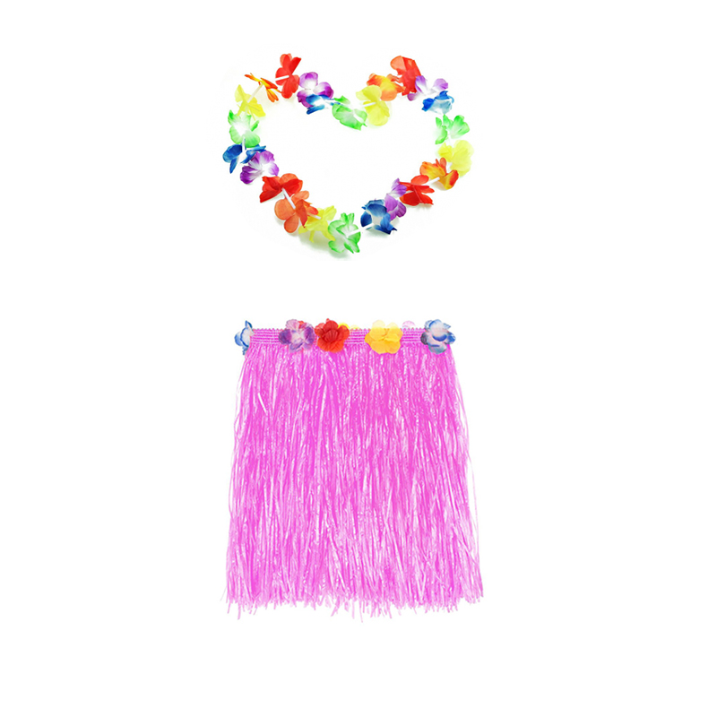 Гавайская юбка 40 см розовая, гавайское ожерелье 96 см