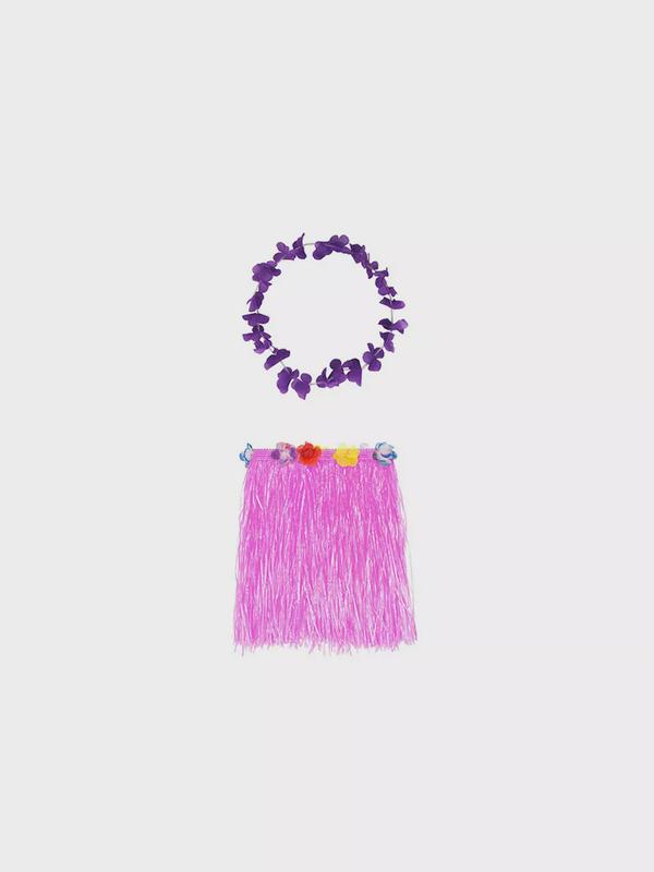 Юбка гавайская 40 см розовая, гавайское ожерелье "Цветочки", цвет фиолетовый