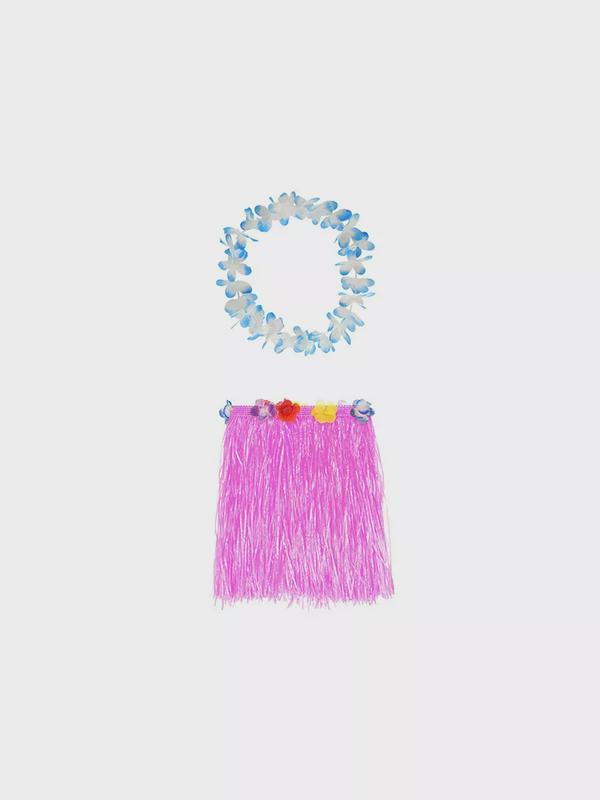 Юбка гавайская 40 см розовая, ожерелье гавайское "Двухцветное", цвет бело-синий-голубой