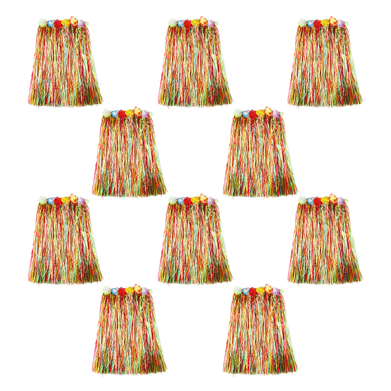Юбка гавайская длинная 60 см, разноцветная с цветочками (Набор 10 шт.)