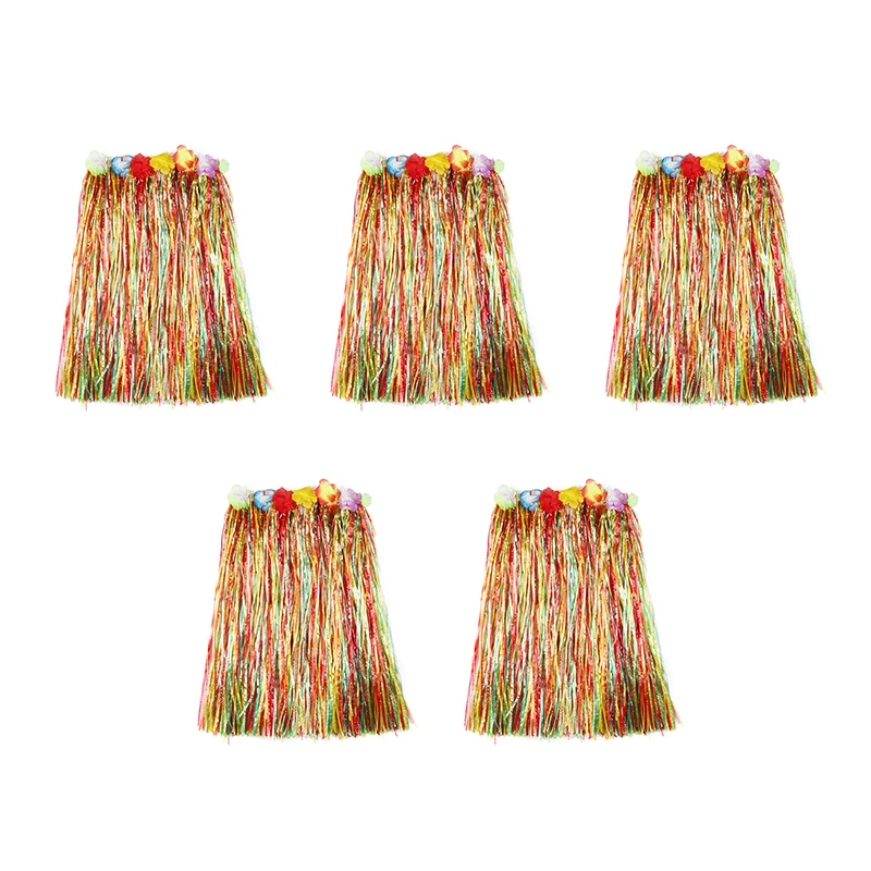 Юбка гавайская длинная 60 см, разноцветная с цветочками (Набор 5 шт.)